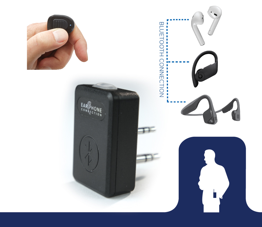 Attach your favorite earbuds and go Wireless to your Motorola or Kenwood 2-Pin Radio!